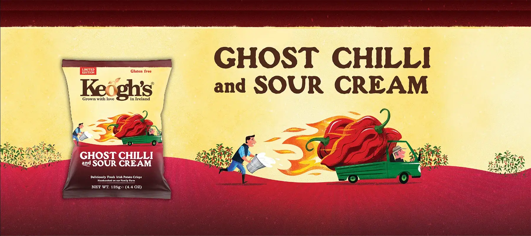 Our Ghost Chilli & Sour Cream Crisps are dialing up the heat! A fusion of fiery ghost chillies perfectly balanced with the cooling tang of sour cream to deliver a tantalizing taste experience unlike any other!